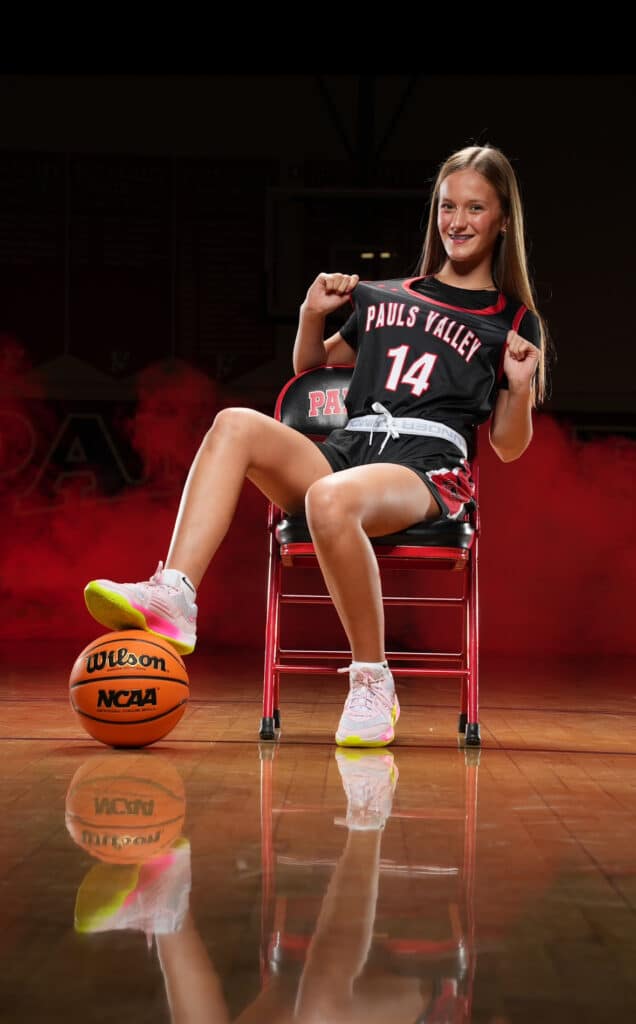 Kate Taylor is more than an athlete at Pauls Valley High School; she’s a devoted junior whose love for the game came long before she stepped on the varsity court. Representing Paul’s Valley in basketball, cheer, and tennis, Taylor excels as a student athlete, knowing what it takes to balance it all.